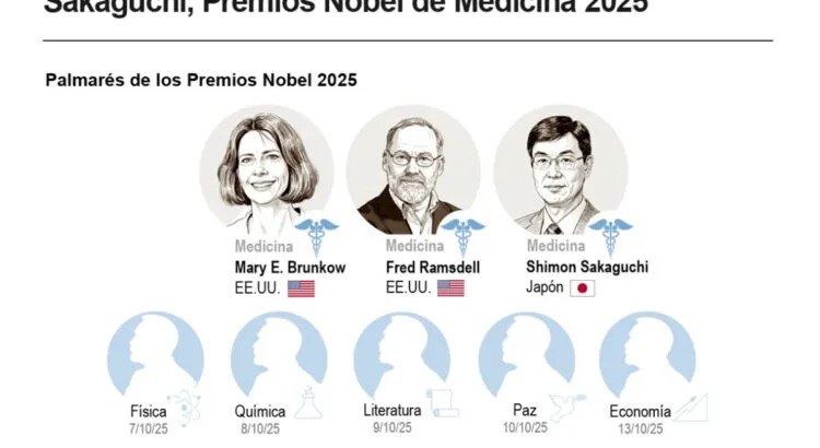 El Premio Nobel de Fisiología o Medicina 2025 ha sido otorgado a Mary E. Brunkow, Fred Ramsdell y Shimon Sakaguchi “por sus descubrimientos relacionados con la tolerancia inmunitaria periférica”, que impide que el sistema inmunitario dañe al propio organismo que protege. Según…